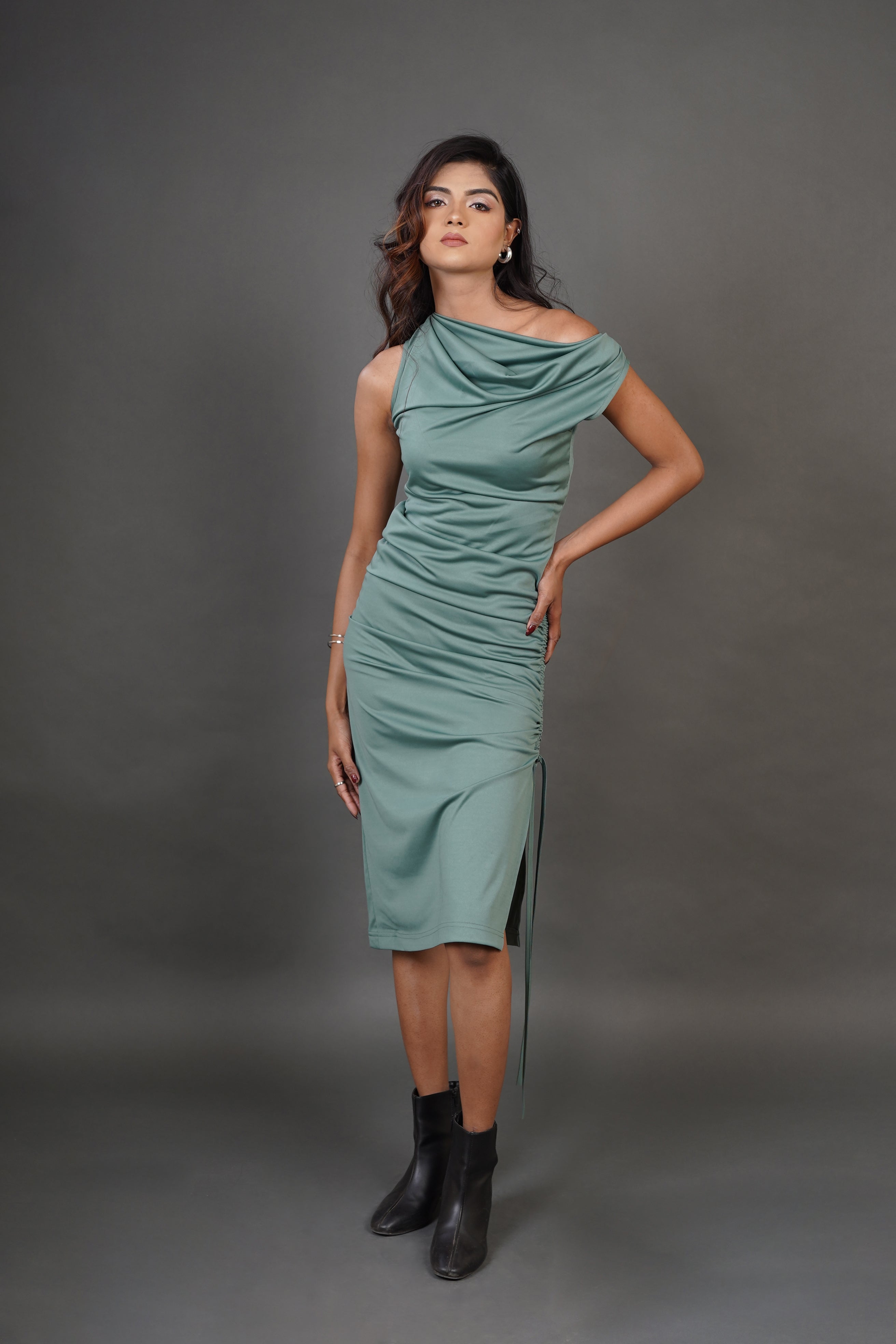 Lycra Draped Midi Dress